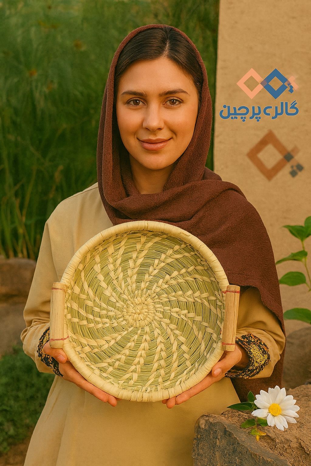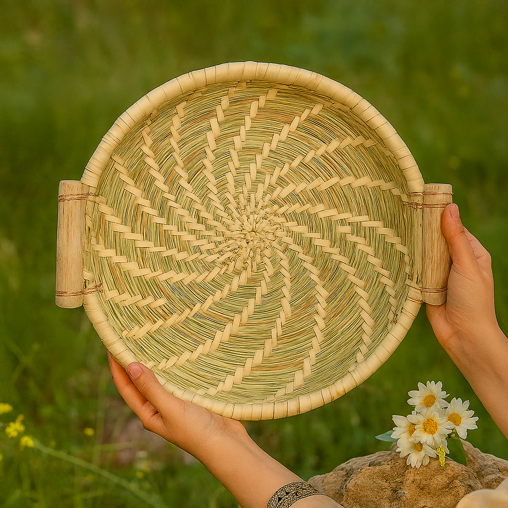 سینی گندمی دسته چوبی